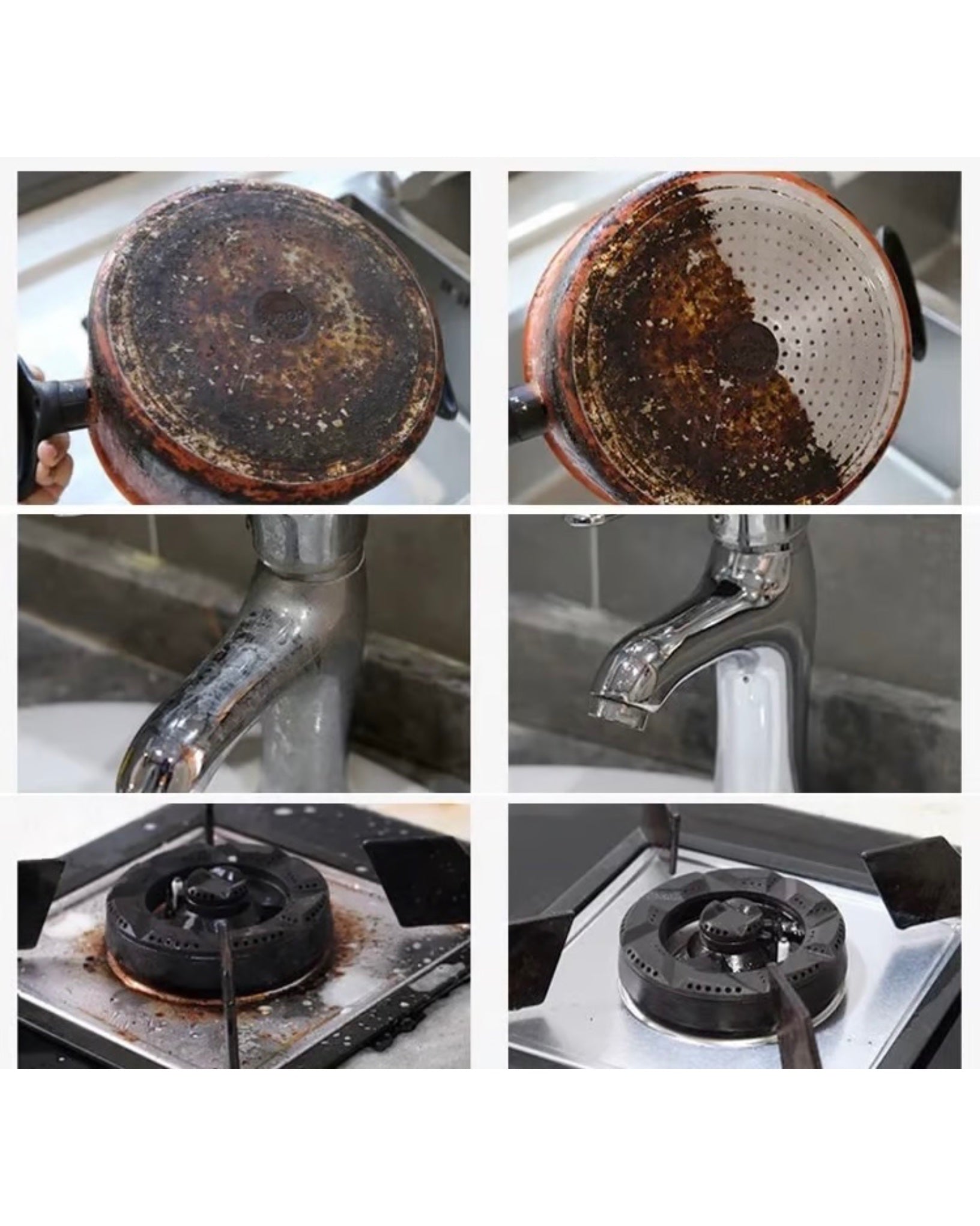 Damit lassen sich Sanitäranlagen, Fußböden, Fliesenfugen, Küchenarbeitsflächen, Mülleimer etc. reinigen und desinfizieren, Flecken aus Teppichen und Möbeln entfernen und sogar angebrannte Speisereste aus Töpfen, Pfannen, Backblechen und Backformen entfernen.